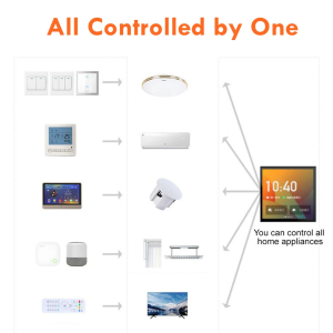 1) Smart multifunctional touch screen control panel. It’s a widely compatible central control device for all Tuya smart devices and intelligent scenes that have smart automated in Smart Life APP, such as ZigBee gateway function and APP remote control.